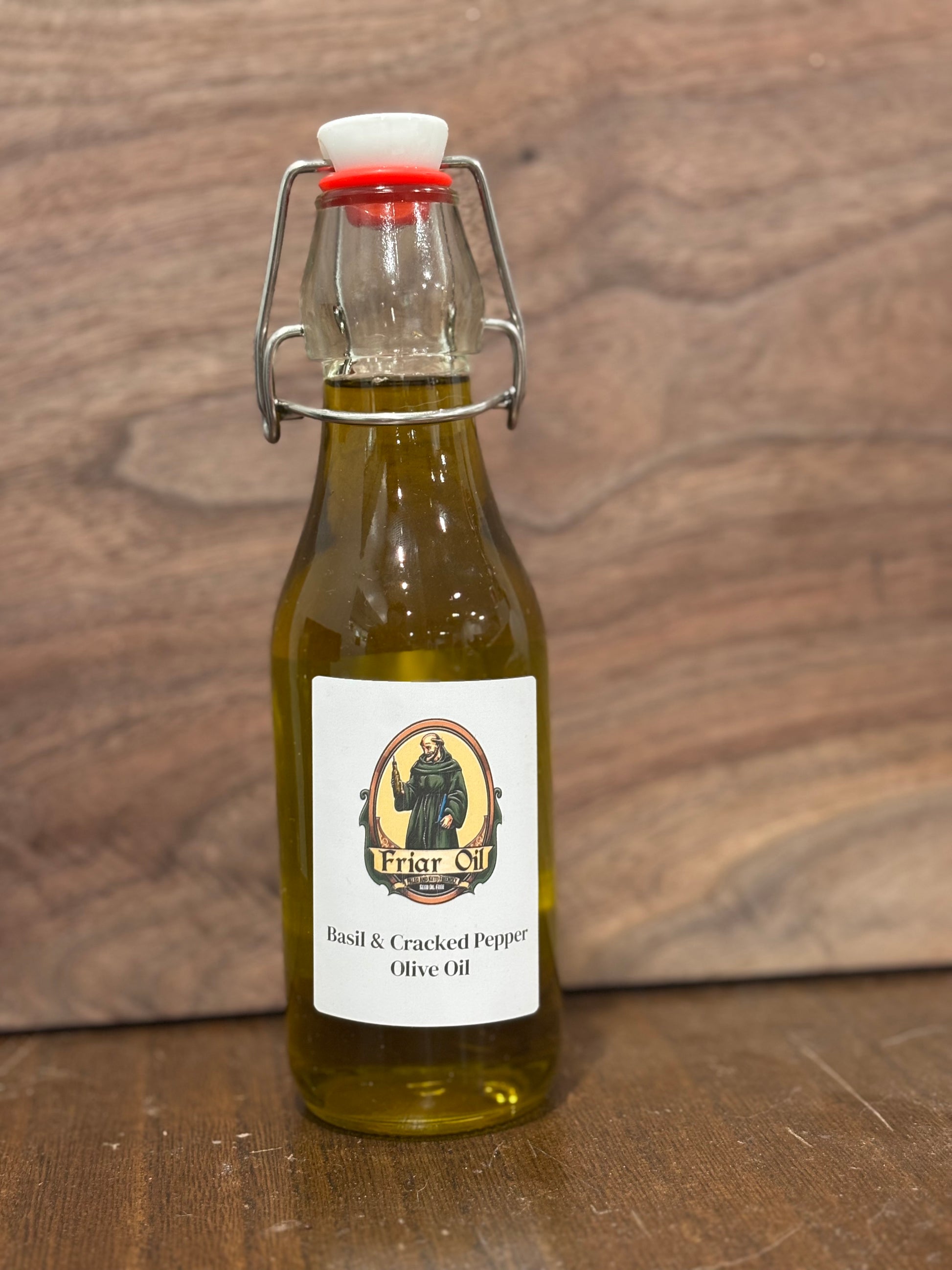 Fresh, vibrant basil meets the subtle heat of cracked black pepper in this smooth extra-virgin olive oil infusion. Bold yet balanced, it elevates simple dishes into something extraordinary. ✨ 100% extra-virgin olive oil base. ✨ Infused naturally—no artificial flavors. Use it for: Caprese salads, pasta, grilled chicken, pizza drizzle, or blending into homemade vinaigrettes.